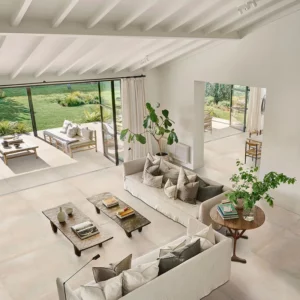 An IN & OUT color is the same shade manufactured in two different finishes: Smooth rectified for interiors, Anti-slip for exteriors.